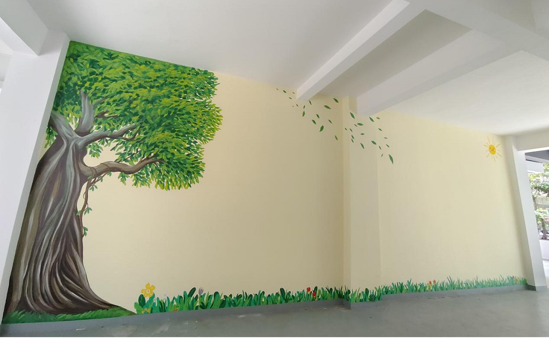 中马路居委旁边的架空层通道上演着“光影魔术”。本次工程将“自然风光”与架空层相结合,通过“自然肌理+文化交互”将原本昏暗的过渡空间转化为兼具美学教育与社区服务的“文化连廊”,结合“微心愿行动”化为“心愿墙”传递微温暖。