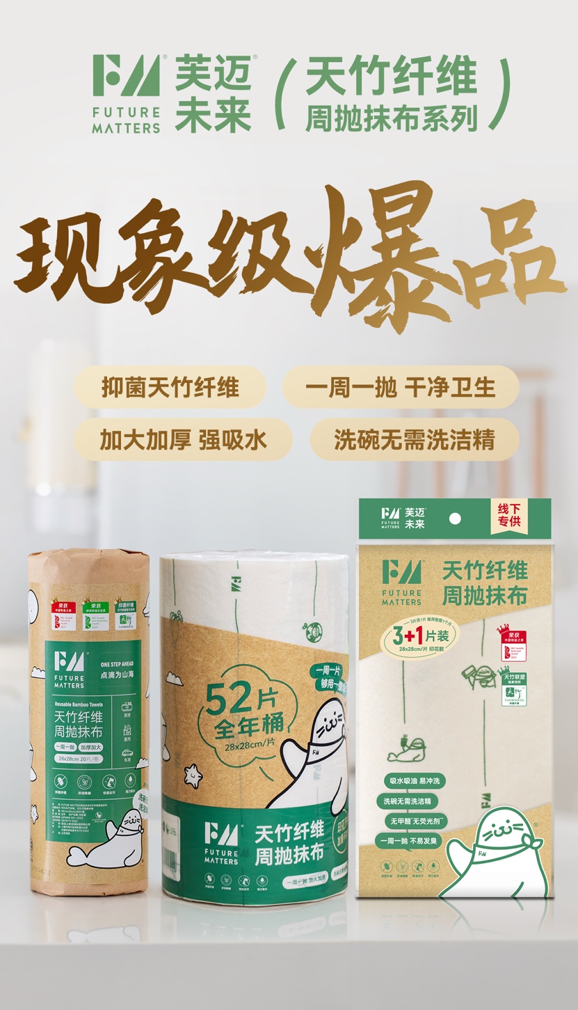 在大健康趋势与可持续环保理念的双重驱动下,FUTURE MATTERS精准切入传统抹布与一次性抹布间的市场断层,其开创的抹布“一周一抛”概念并植入产品基因,明确宣称其标准,实现了“循环使用与定期更换”的平衡,重新定义了厨房清洁健康标准。自首发周抛抹布产品以来,FUTURE MATTERS凭借这一现象级单品,引领了一场围绕“周抛”概念的品类革命。