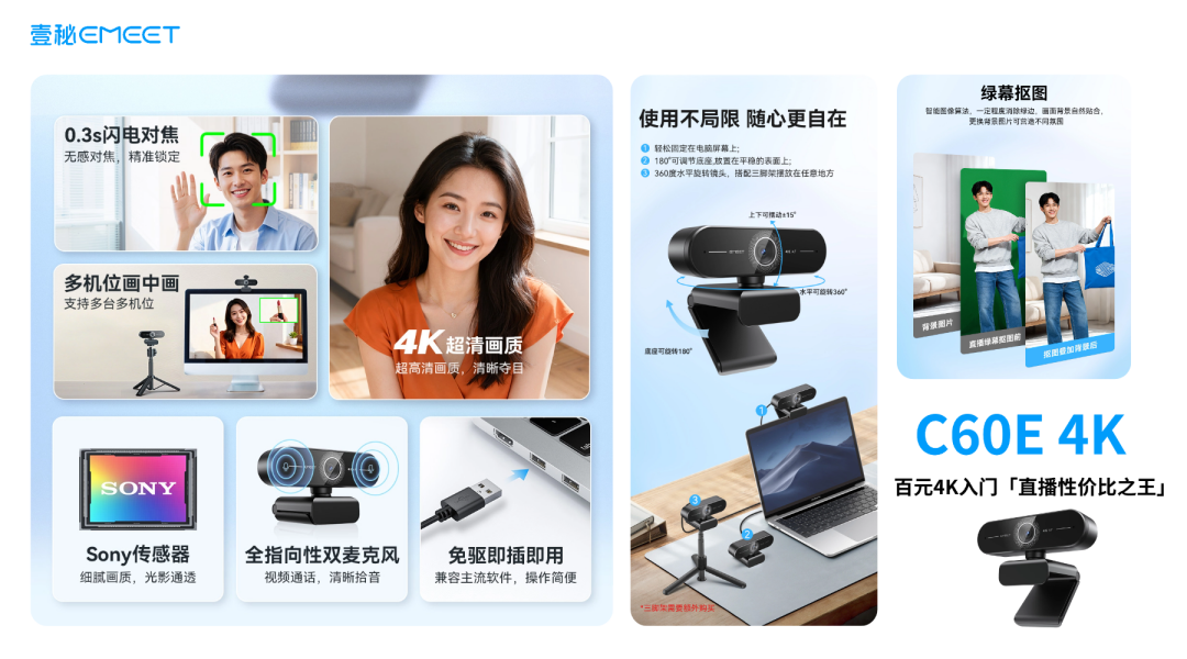 1、EMEET超清摄像头C60E 4K