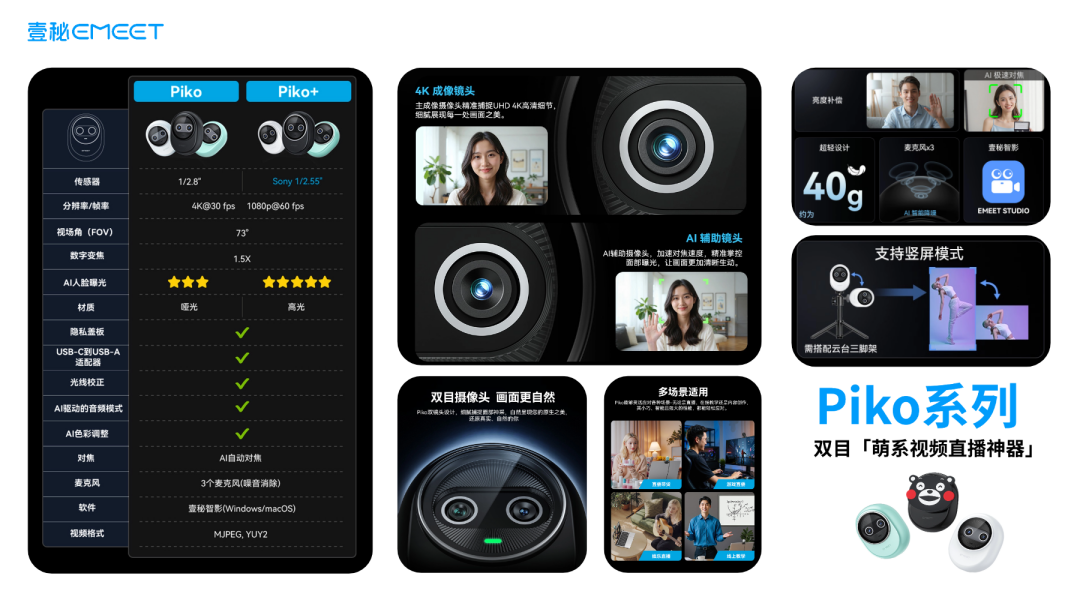 2、EMEET Piko系列AI直播摄像头