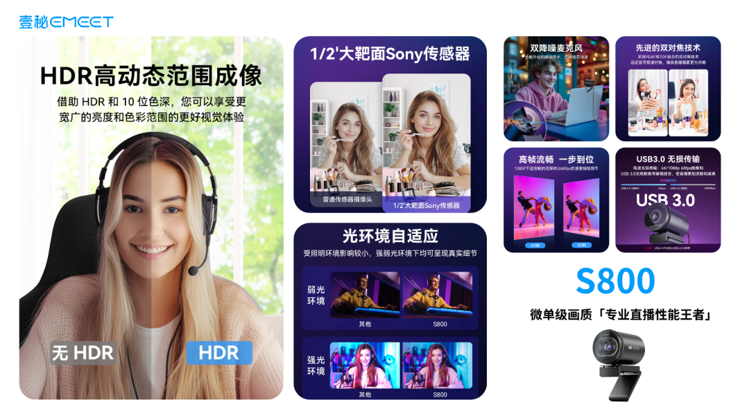 • 适配场景:满足日常视频会议、在线教学及初阶直播画质需求。