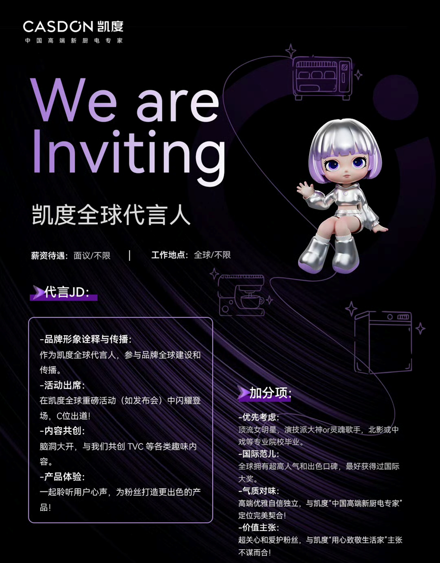 凯度电器此次携手品牌全球代言人杨幂,旨在突破传统厨电营销的边界,借助其广泛的国民影响力与时尚引领者形象,为品牌注入全新活力,进一步强化其在高端厨电领域的品牌定位,开启面向新一代消费者的沟通新篇章。
