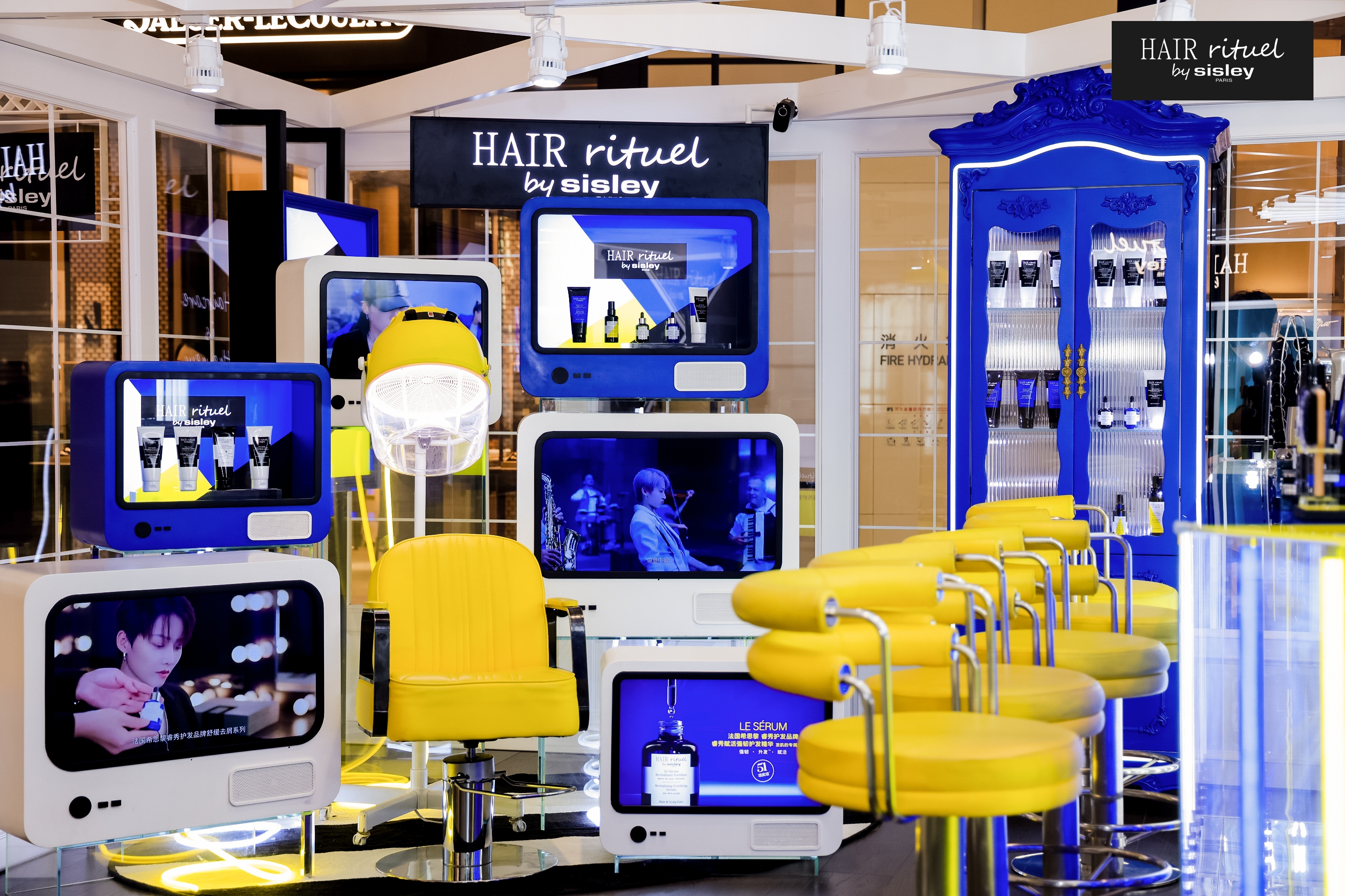 法国希思黎睿秀护发限时快闪店融合了欧式高端发廊的经典风格和当代时髦前卫的设计理念,以品牌标志性的蓝、黄、黑、白为主色调,打造出经典又新潮的睿秀发廊。彰显出法国希思黎睿秀护发品牌的底蕴——先锋科技与艺术体验的完美融合。