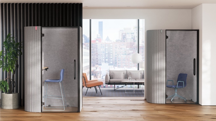 当踏入Bay办公舱时,办公室里的繁忙喧嚣仿佛暂时暂停,使用者可以全身心投入到深度工作或电话会议中。其圆角设计和波纹织物外观与大多数办公隔间形成鲜明对比,这种美观的设计还能有效减少舱室内外的噪音污染,配合可选的磨砂玻璃设计让专注力持续升级。