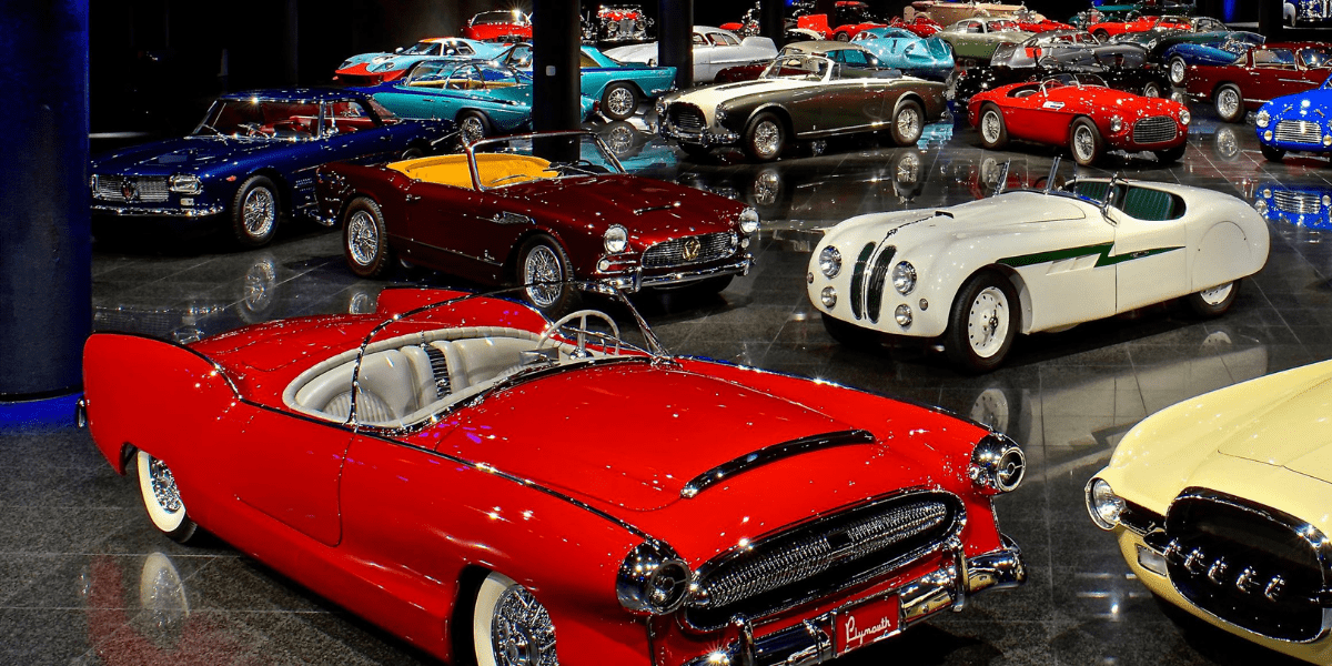 常年展示稀有经典车型,包括复古法拉利、定制帕卡德等博物馆级藏品