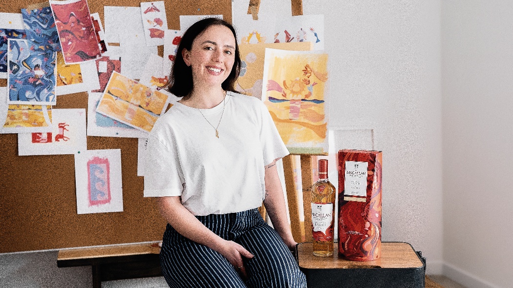 针对焕新系列第四款产品,麦卡伦与居住于新西兰惠灵顿的艺术家兼插画家邦尼·布朗展开合作。这位惠灵顿的艺术家以大胆的笔触与明丽的色彩运用著称,其插画作品广泛出现在各类日常场景中——无论是杂志封面,还是牛奶盒包装,都能见到她独具一格的艺术表达。