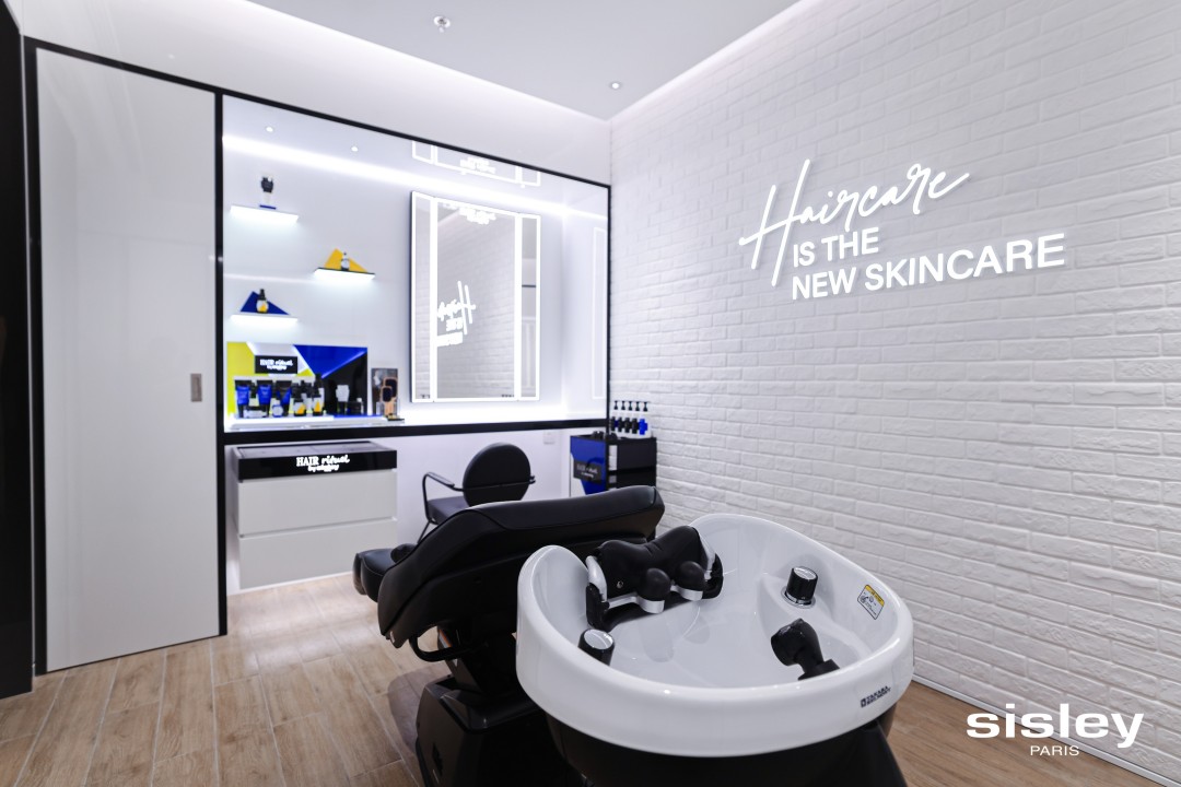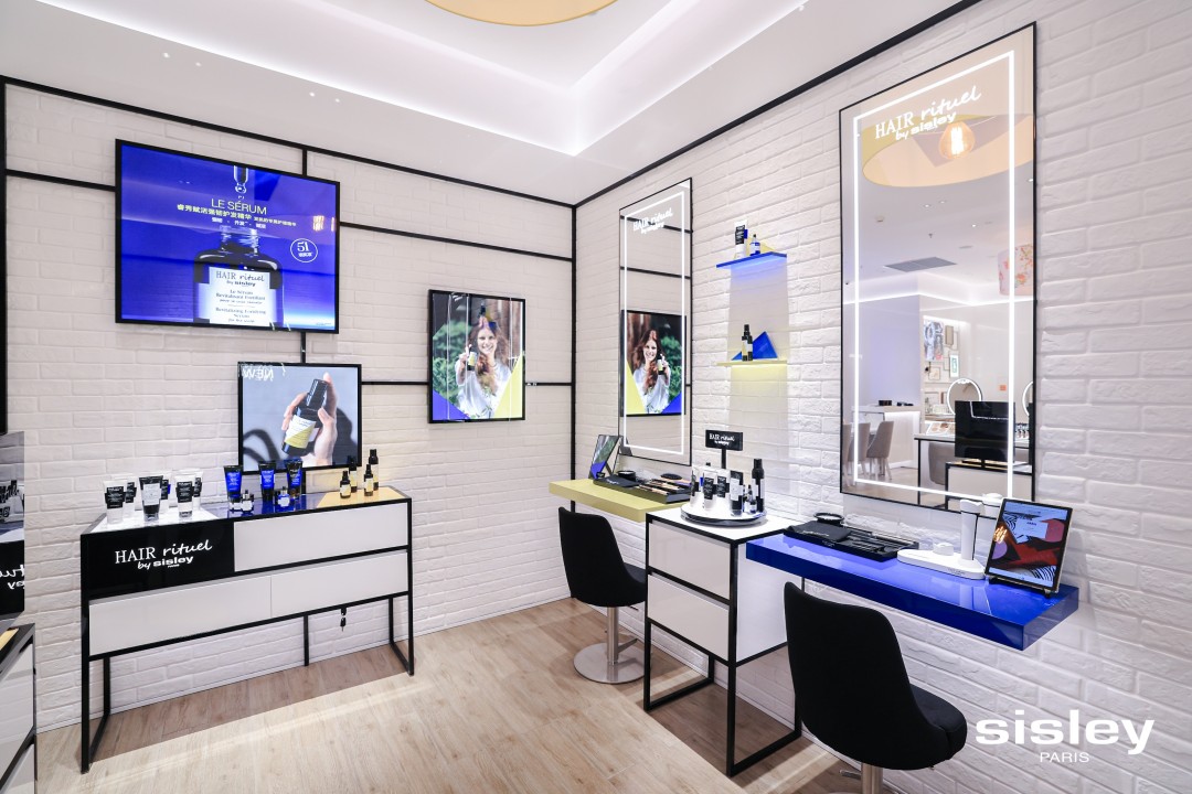 而位于右侧的Hair Rituel睿秀护发品牌,融合了欧式高端发廊的经典风格和当代时髦前卫的设计理念,以品牌标志性的蓝、黄、黑、白为主色调,打造出经典又新潮的睿秀发廊。彰显出法国希思黎睿秀护发品牌的底蕴——先锋科技与艺术体验的完美融合。简洁大气的线条,传统经典的发廊陈设,精致的发光灯牌广告,这座窗明几净的睿秀发廊散发着跨越时代的美感,充满个性的时髦气息扑面而来,引人不禁驻足探索。象征着法国希思黎睿秀护发品牌致敬护发经典,无惧潮流往复,秉承“护发如护肤”的理念,将四十多年全球领先的护肤成果延续到护发产品中,以一如既往的精湛工艺凝练珍稀植萃能量,开创了奢华洗护市场新篇章,引领摩登护发理念新风潮。