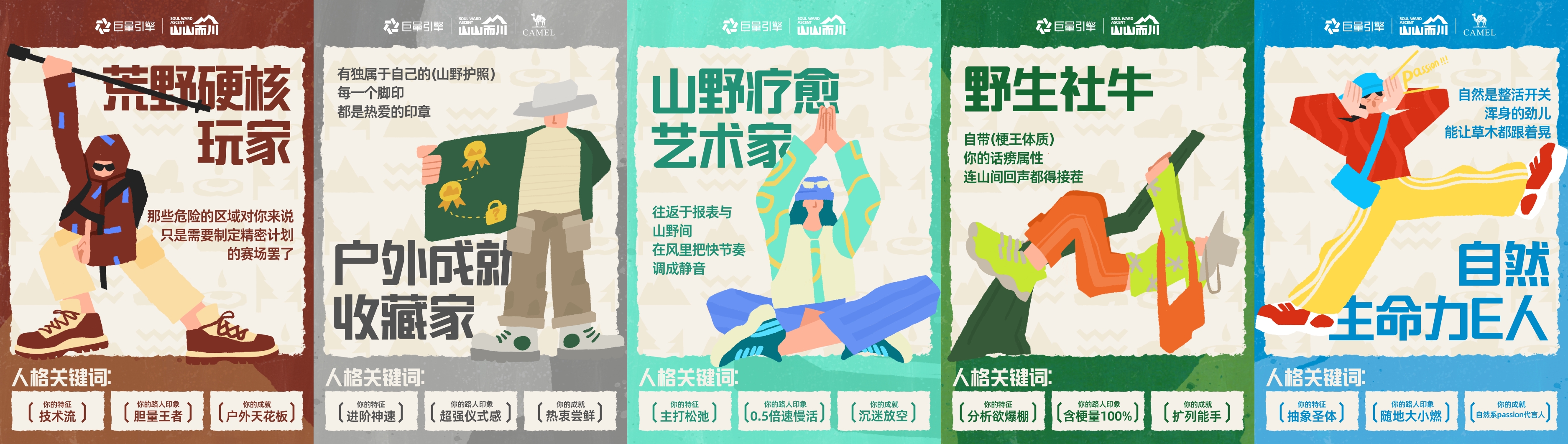 从“五大山野趋势”到“五大户外人格”,「山山而川」IP首先通过“划圈子”的方式唤起户外核心圈层的注意力,并借助平台影响力树立趋势引领的姿态,奠定圈层信任基础,从而激活核心圈层,让他们率先玩起来。
