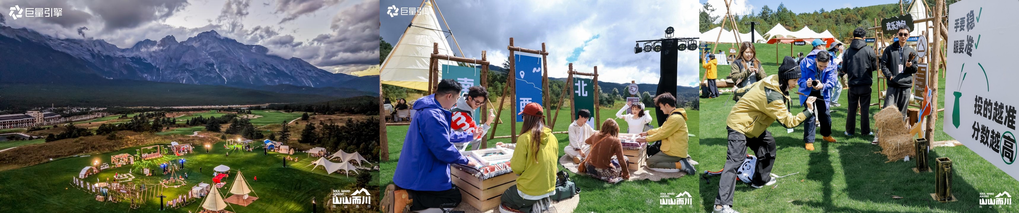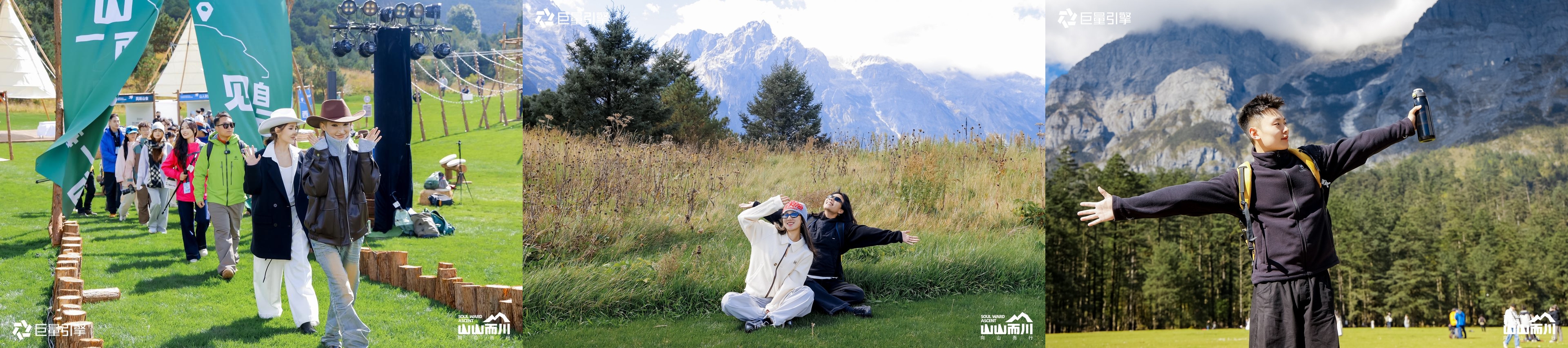 户外品牌真正的舞台当然还得在大山里。作为「山山而川」IP的重头戏,巨量引擎联合丽江文旅在玉龙雪山脚下举办了一场「山山而川·山人行」户外盛典,聚集50位户外达人,将线上的趋势、话题以及品牌产品全部还原于真实户外场景中。