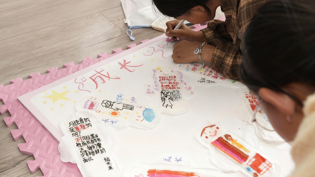 当天下午,女孩们在“身体国挑战”中学习了卫生巾的使用,并用创意绘画的形式,了解了身体知识,增强对月经的科学理解和自我保护意识。