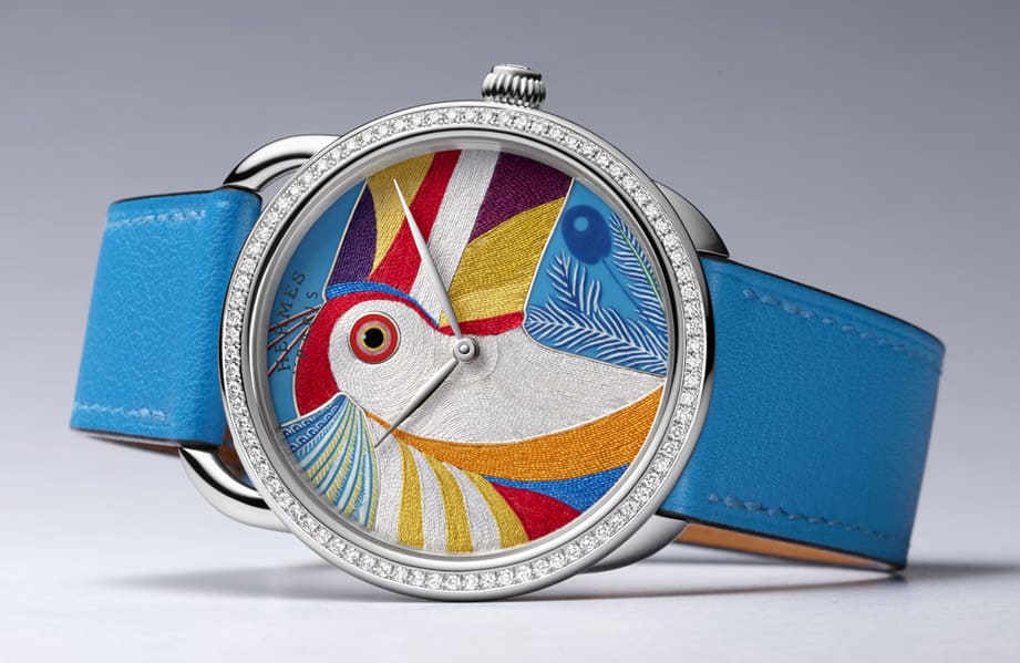2021年爱马仕推出运动独家丝线工艺的Arceau Toucan de Paradis腕表
