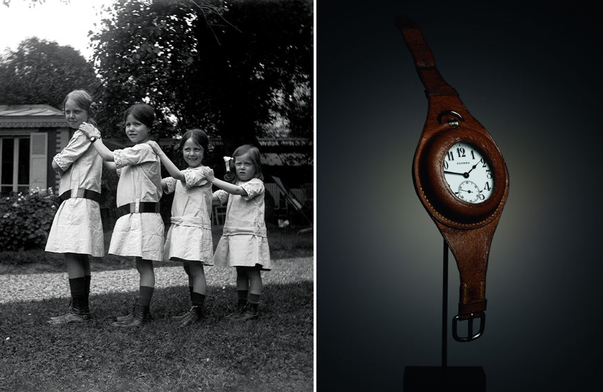 1912年,一张珍贵的影像记录下Jacqueline Hermès佩戴着一只其父亲Émile Hermès制作的怀表皮套(Porte Oignon)。这并非一枚时计,却至关重要:它象征着爱马仕将时间视作一件需要被妥善安放、精心呵护的“物件”,一如他们制作的任何一件皮具。