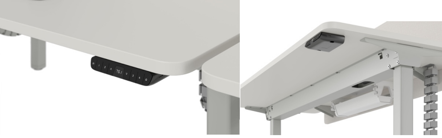 电动升降系统配有四个位置的记忆触控开关,在静音丝滑的升降过程中一键直达指定高度;垂直的电缆管理系统,让升降线路隐藏于简练的装饰之中,确保桌面与办公环境始终保持优雅整洁。