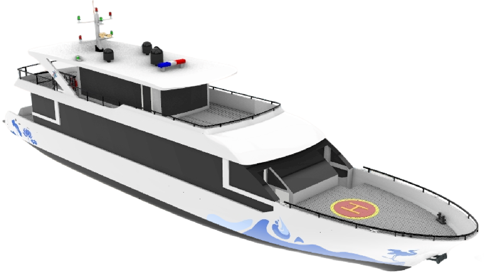 该标准船主要面向长江航务管理局、长江海事局等水上监管机构全新研发,采用纯电动驱动,船长33.35米,型宽6米,型深1.9米,搭载965kWh磷酸铁锂电池,采用充电模式,设计续航里程100km。