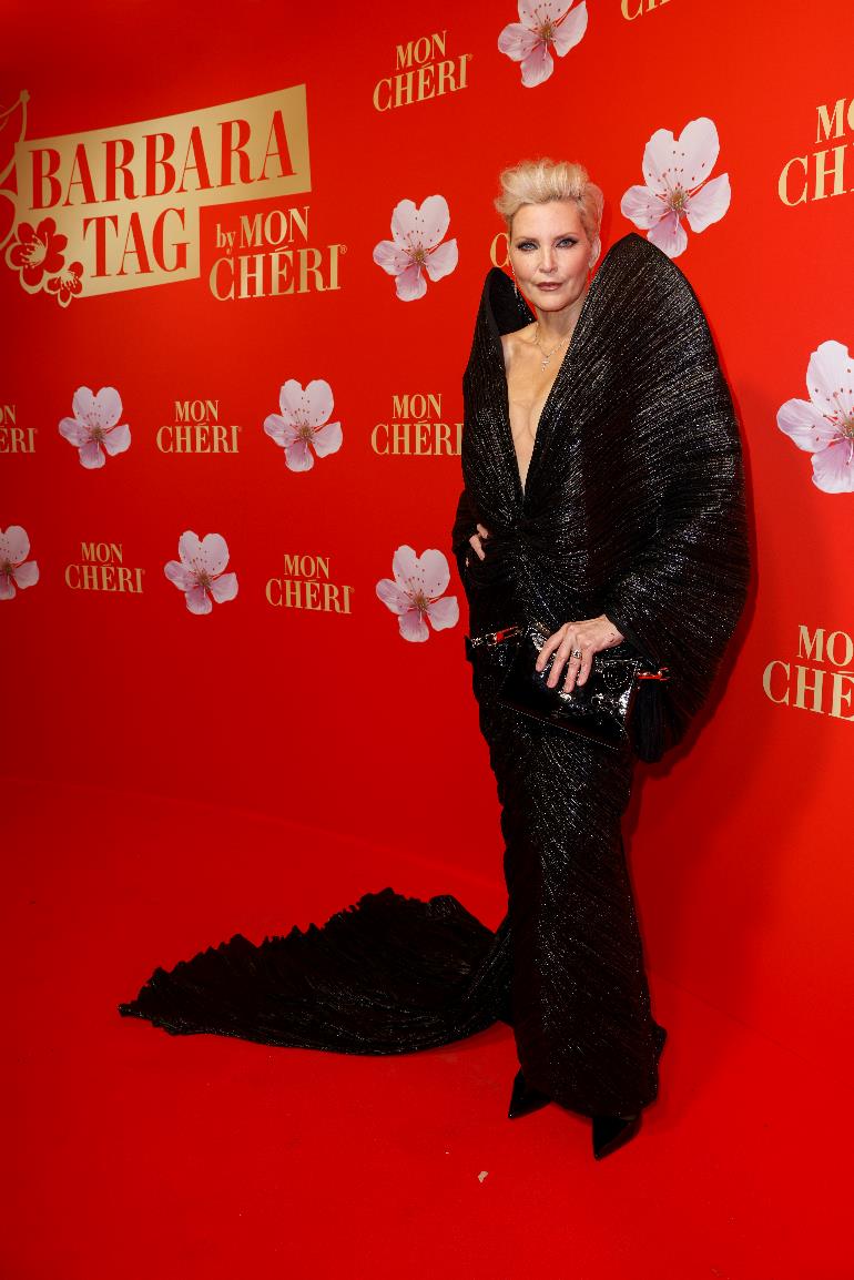德国传奇超模 娜嘉·奥尔曼(Nadja Auermann)身着Lena Erziak黑色建筑感高级定制礼服惊艳亮相,搭配简约利落的Aigner手袋。同样由Greg Alexander打造的造型,以利落线条、精湛工艺与自信气场完美呈现现代高级定制的戏剧张力。娜嘉以冰雪女神般的高挑气质和标志性美貌闻名全球,热心公益,长期参与慈善晚宴及社会关怀活动,兼具优雅、力量与社会责任感。