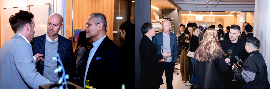 当晚,来自设计界、商业界的伙伴们齐聚一堂,共同见证了这一历史性时刻。建筑师、设计师、经销商伙伴、品牌好友、以及MillerKnoll的全球领导团队成员,大家欢聚在这个全新的空间里共同举杯,庆贺MillerKnoll上海展厅的盛大揭幕。