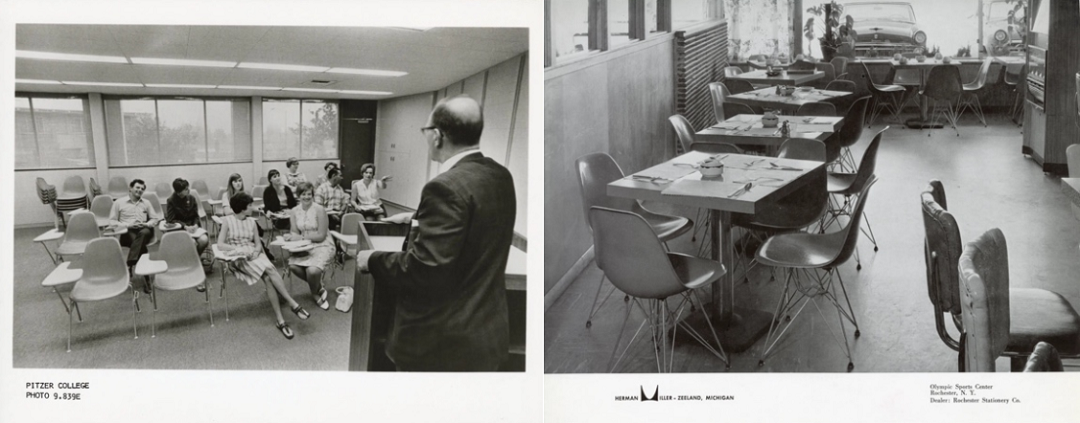 Herman Miller在De Pree家族的领导下,全力支持模具开发与市场推广。最初的Shell Chair采用玻璃纤维增强聚酯树脂,通过大型压模机成型。在1950至1970年代,Eames Shell Chair迅速成为战后现代主义的标志性象征,诠释了设计的民主精神(Democracy of Design)——为每个空间提供优质、实用、现代的家具,,并出现在全球博物馆、学校和无数日常场景中。