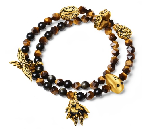 六根手串则将不同“六根”符号具象为珠饰,以硅化玉与黑曜石串连成环,触手温润却暗蓄锋芒。更有【六根齐聚】双层手串,将六根凝作一环,在缠绕中照见“六根归一”的禅意。