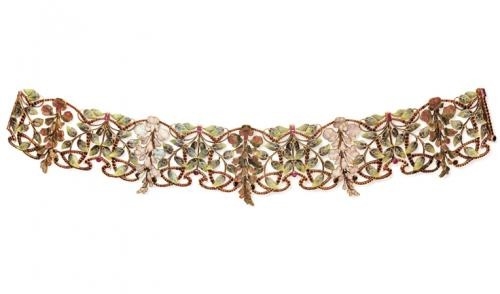 伦敦V&A博物馆中,Philippe Wolfers(菲利普・沃尔弗斯)的《Orchidee》(兰花)珠宝静静陈列于防弹玻璃柜内。新艺术运动特有的曲线勾勒花瓣脉络,钻石镶嵌精准贴合自然生长轨迹,它与纽约大都会博物馆的蓝宝石项链《Princess Peacock》(孔雀公主)同出比利时Wolfers家族工坊。