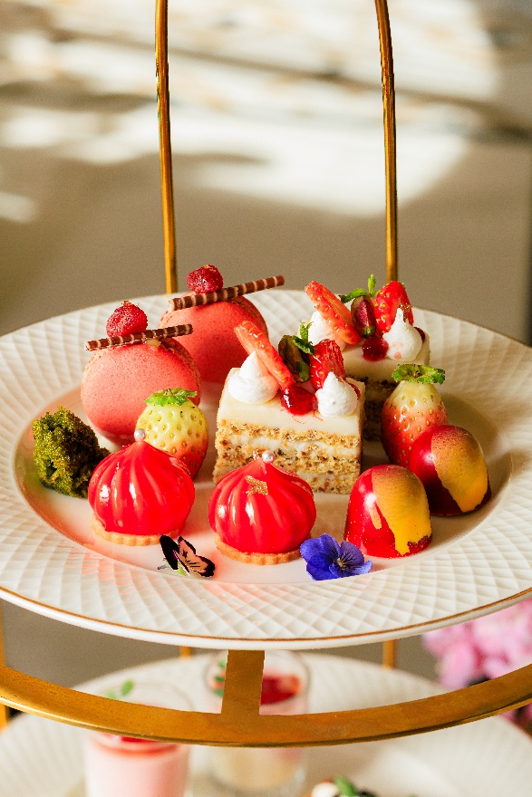 多款手作糕点为钟爱甜品的客人带来惊喜,包括草莓玫瑰慕斯 (杏仁饼干、草莓果酱与玫瑰慕斯),草莓开心果起酥蛋糕 (布列塔尼酥饼、新鲜草莓),草莓柠檬塔 (草莓与柠檬蜂蜜奶油)。整个下午茶体验以草莓马达加斯加香草司康饼收尾,配以自制的本地草莓果酱。