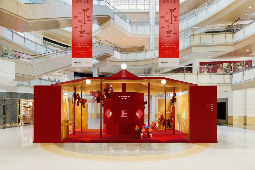 这份新春喜悦并未止步于游园会,在跑马灯亭不远处,周大福特别打造的新春茶室,将传统茶歇与趣味游戏体验相结合,为游园宾客提供可小憩的雅致空间。同时,周大福也将童趣满满的小马装置带到店铺,让宾客在新春购物中,也能收获马年喜乐福运,让节庆欢愉贯穿始终。
