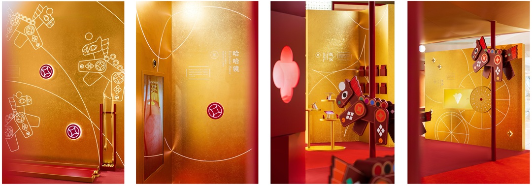沿动线徐徐深入,亭台中心周围的“捶丸”“哈哈镜”“纸玩”“关扑”四重雅趣体验渐次展开,层层递呈“康、乐、慧、合、”新春祝愿。