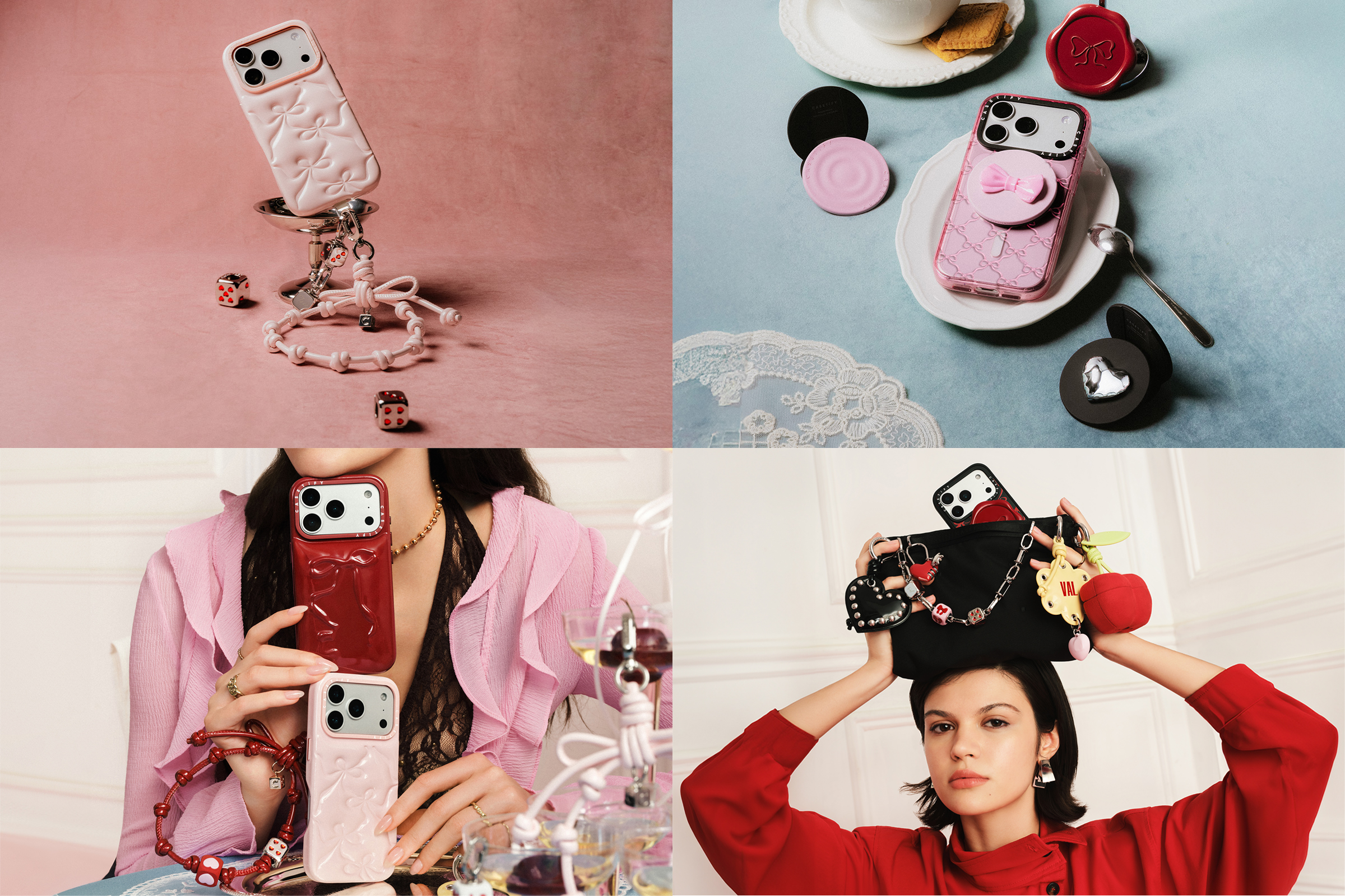 CASETiFY 将爱意的表达从“浪漫想象”拉回到真实陪伴,献给那些已成为家人的挚友、懂你所有梗的知己,以及始终陪你在线的人——当然,也包括你自己。泡芙手机壳系列带来丰盈触感,芭蕾粉浮雕蝴蝶结与宝石红凹刻设计,甜美与张力并存;蝴蝶结手机支架、双头编绳斜挎带、樱桃与蝴蝶结手机腕带、金属串珠与泡芙花朵包挂等多款配件,从实用到造型,层层叠加,让每一份心意都被看见、被携带、被珍藏。