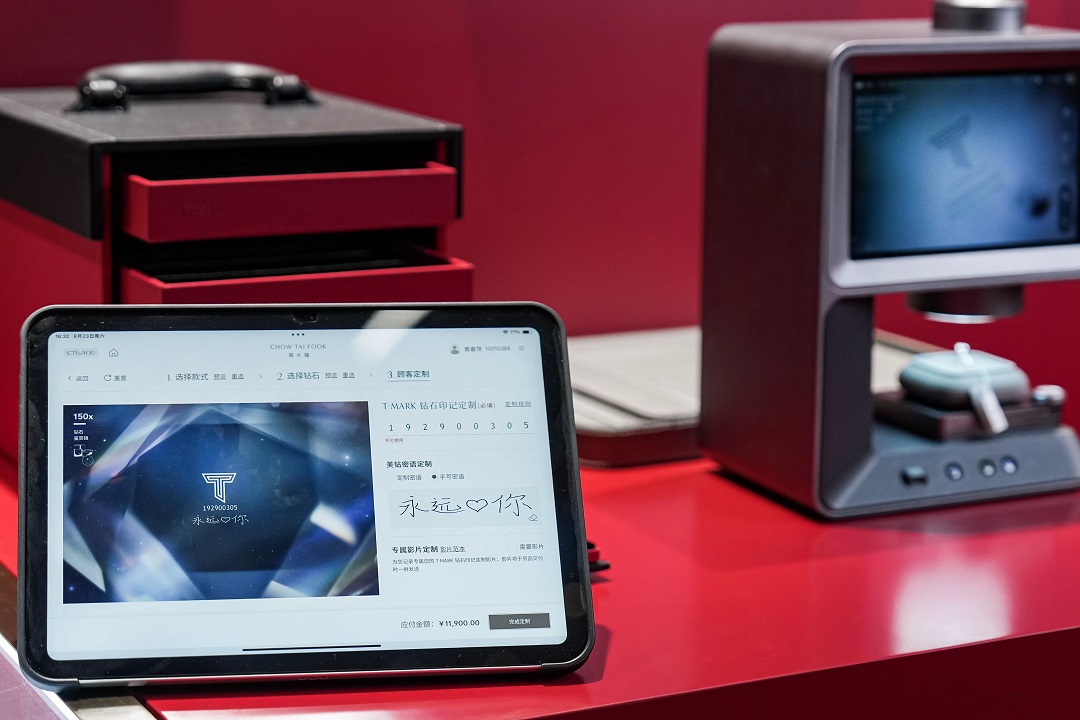 「CTF for YOU 定制体验区」不仅提供个性化定制服务,更为每一段动人故事赋予璀璨的见证。T·MARK 钻石印记定制,让每颗T·MARK钻石拥有可追溯的来历,并将重要时刻与心意密语永恒镌刻,成就独属于你的叙事。而 Twins Diamond 同胚钻定制,则诠释了“天生一对”的浪漫——让两颗钻石,源于同一颗原石,共享生命图谱,依托戴比尔斯集团 Tracr™ 数字平台,实现基因同源认证,为天生一对,赋予权威见证。