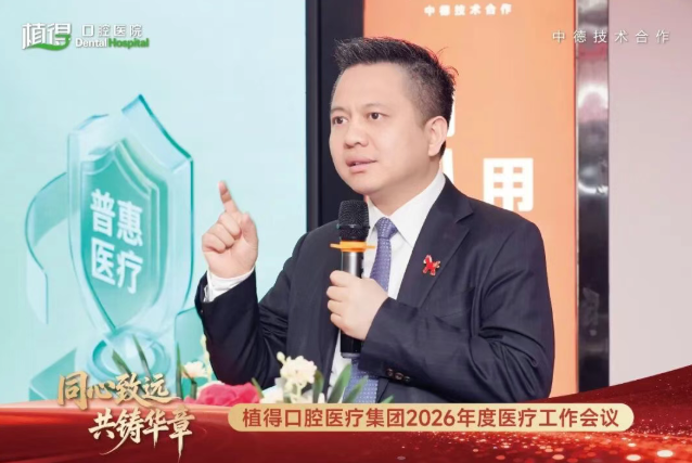 会议最后,植得口腔医疗集团董事长刘明舟对2026年重点工作进行全面部署,强调医者仁心,普惠为民,医疗质量是医院发展的生命线,要求全体医疗从业者坚守医者初心,以患者为中心,持续提升专业能力与服务水平。同时,明确集团将持续加大在学科建设、人才培养、技术升级与服务优化等方面的投入,深化“好医生”战略,不断夯实医疗根基,提升综合竞争力。