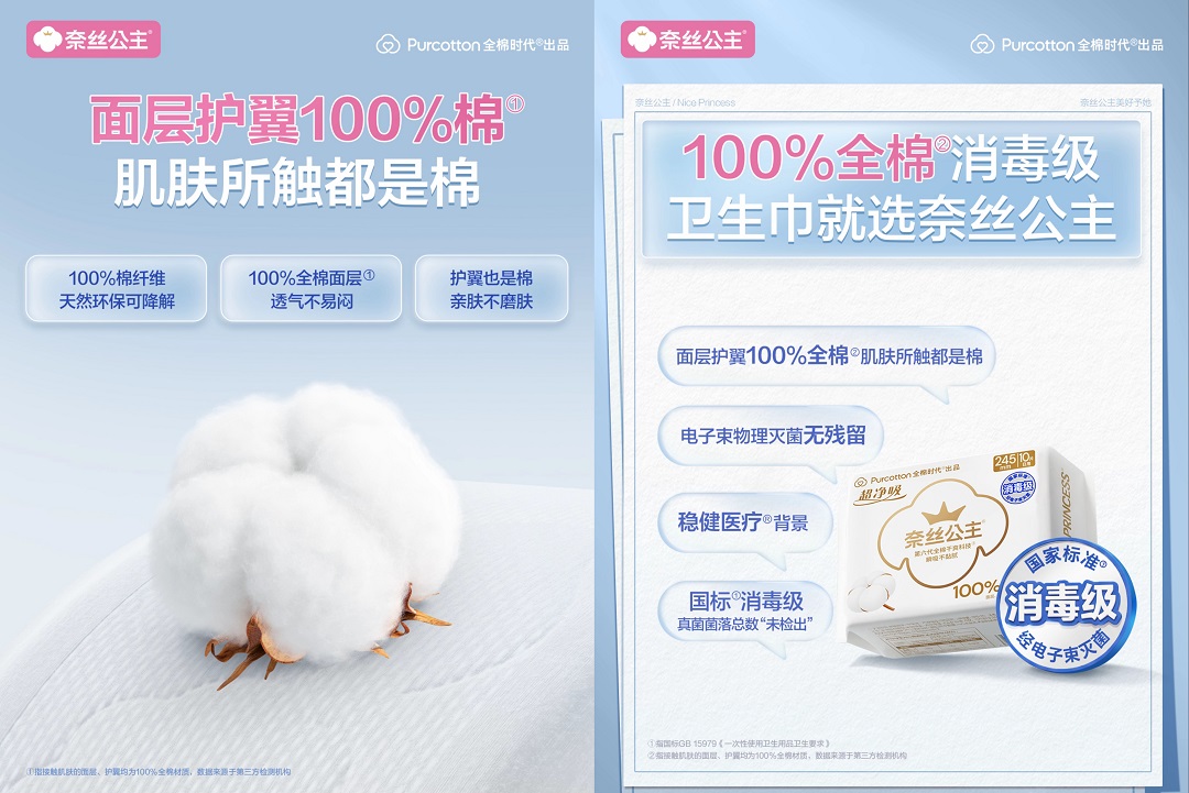 同样,“美好”也是奈丝公主始终坚持的品牌追求。奈丝公主的品牌名源自“Nice Princess”,「奈丝」是 Nice「美好」的谐音。奈丝公主(Nice Princess)的品牌初衷,便是希望像呵护公主一样呵护每一位女性,将“美好”带给每一个“她”。为了这份承诺, 奈丝公主坚持选用高等级的天然棉花,从面层到护翼等所有接触肌肤的部分都是100%棉,只为像呵护公主一样,将美好体验带给所有女性。