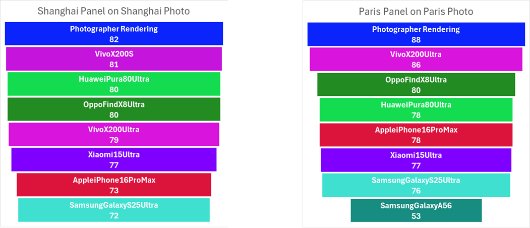 *上海与巴黎样本对不同设备摄影风格渲染表现的评分
