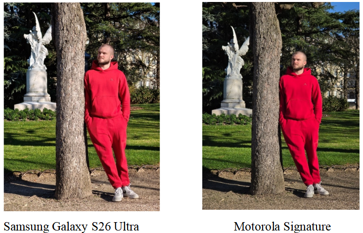 而在 3×变焦时,三星 Galaxy S26 Ultra 的专用长焦模块虽然占据领先位置,但 Motorola Signature 在切换至其长焦模块后,凭借 更大的传感器 与 更大的光圈,整体表现也明显更强。