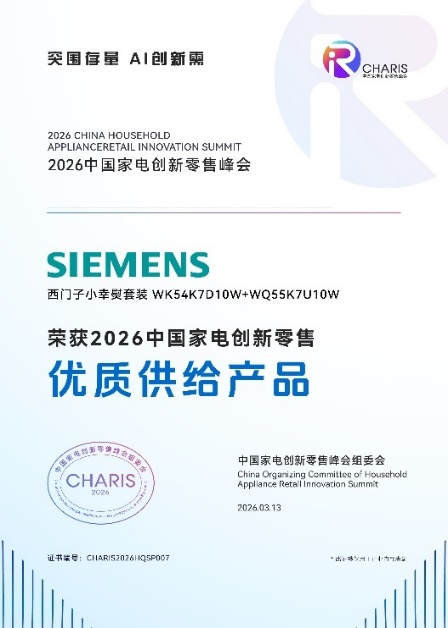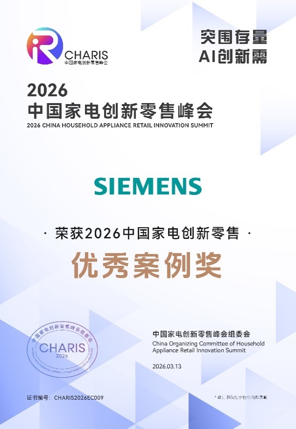 博西家电旗下品牌西门子家电荣获“2026中国家电创新零售优秀案例奖”