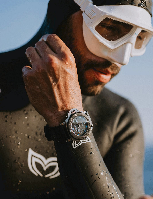 沛纳海宣布运动员、探险家兼励志演讲者Arthur Guérin-Boëri担任品牌挚友。对海洋的共同热爱促成了这场特别的合作,让沛纳海与这位意志坚定的冒险家紧密相连。Arthur是一位杰出的自由潜水运动员,创造了八项世界纪录,其中两项为在极端条件下完成的冰潜纪录。除了发展体育事业之外,他同样热衷于探索海洋文化,致力于增进人们对脆弱的海洋生态系统的理解。