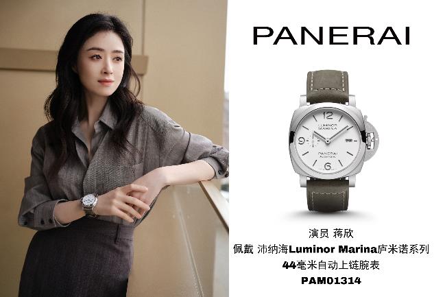 演员蒋欣佩戴沛纳海Luminor Marina庐米诺系列44毫米自动上链腕表(PAM01314)