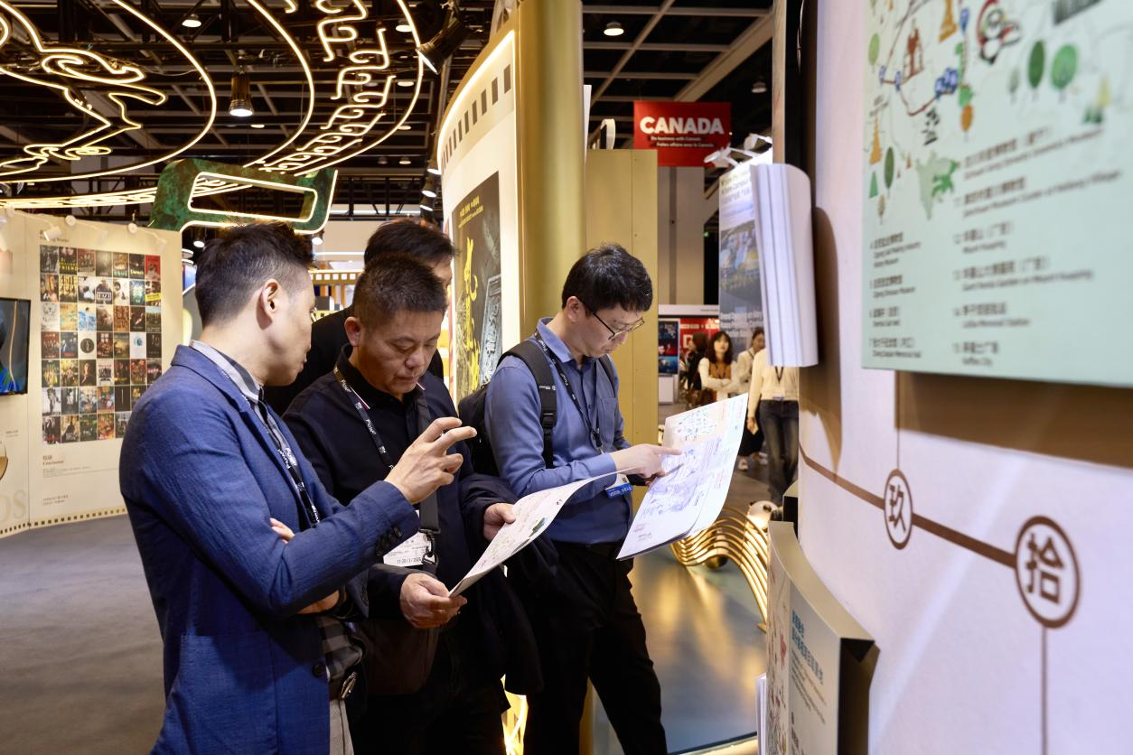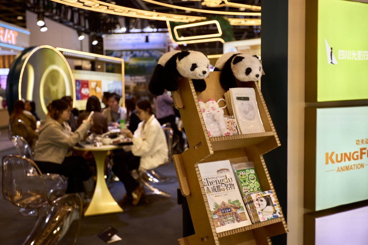 在2026香港國際影視展現場,成都文旅集團下屬成都光影天府影旅文化發展有限公司(以下簡稱「光影天府公司」)為四川展團精心設計的「影旅融合」主題展區備受矚目,重點展示的十條精品「跟著影影視遊四川」線路,串聯成都、宜賓等熱門取景地及三星堆、大熊貓基地等標誌性景點,詳盡的取景地介紹手冊與設計精美的宣傳單頁可供客商免費取閱,成都中青旅甚至安排專人在現場給大家講解線路特色。同時,一套集全省21市州特色風物於一體的創意冰箱貼,以及熱播劇的衍生週邊,與熊貓主題的貼紙、香卡、香氛掛飾及趴趴公仔等四川特色伴手禮相得益彰,吸引眾多國際買家駐足交流。