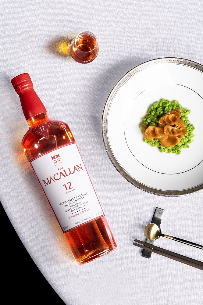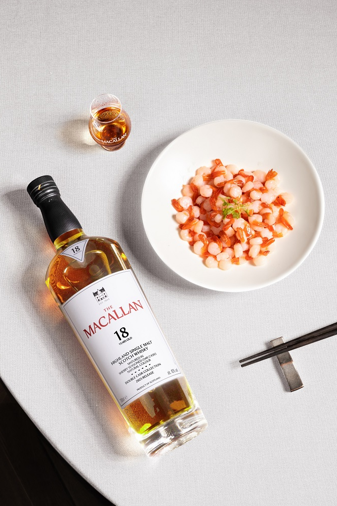 14头鲍汁南非鲍与捞汁小海鲜的浓醇鲜辣,遇上麦卡伦双雪莉桶12年的辛香与18年的肉豆蔻香,层层风味交织,让海味本鲜更具深度。