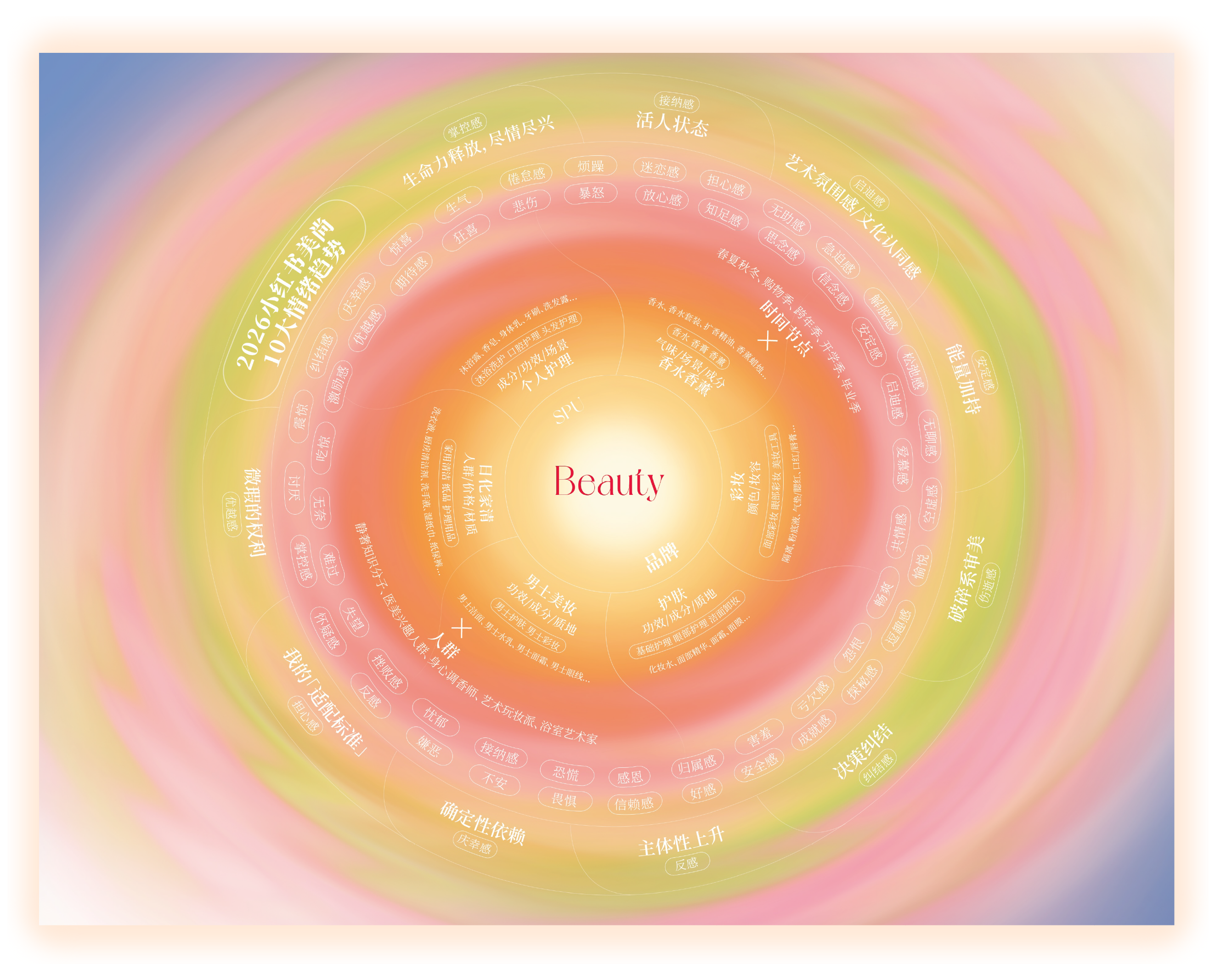 在这张全景式图谱中,情绪如同涟漪,呈现出层层演进的脉络。它不仅帮助品牌以前所未有的全局视角,看清从“微观体验”到“宏观趋势”的演变全貌,更为美护行业进一步理解“情绪主位”命题,提供了一份可落地的方向指南。