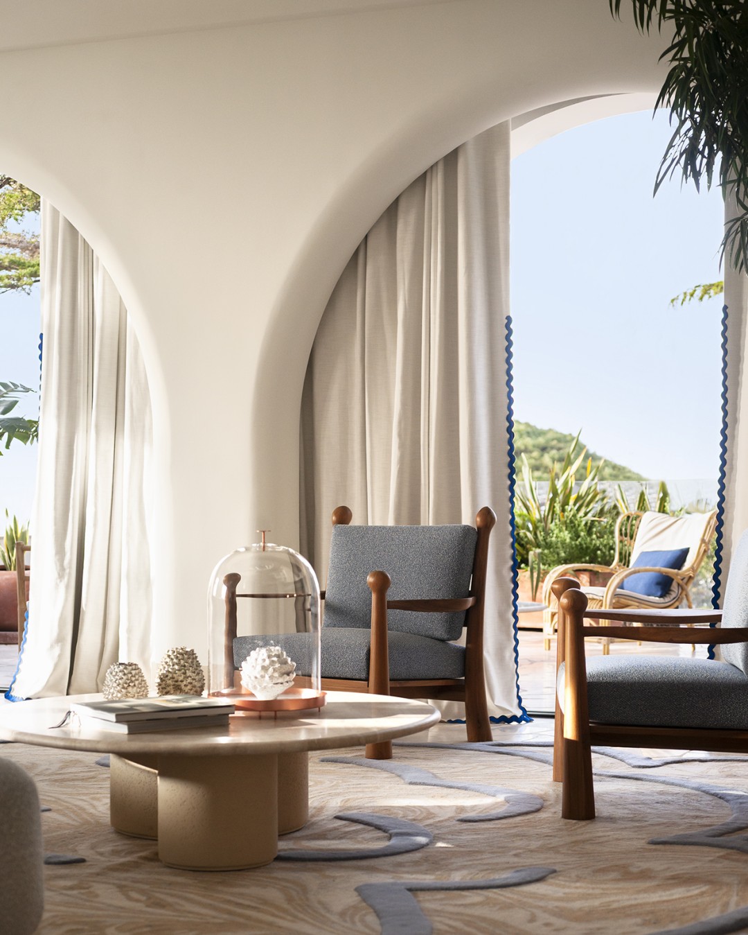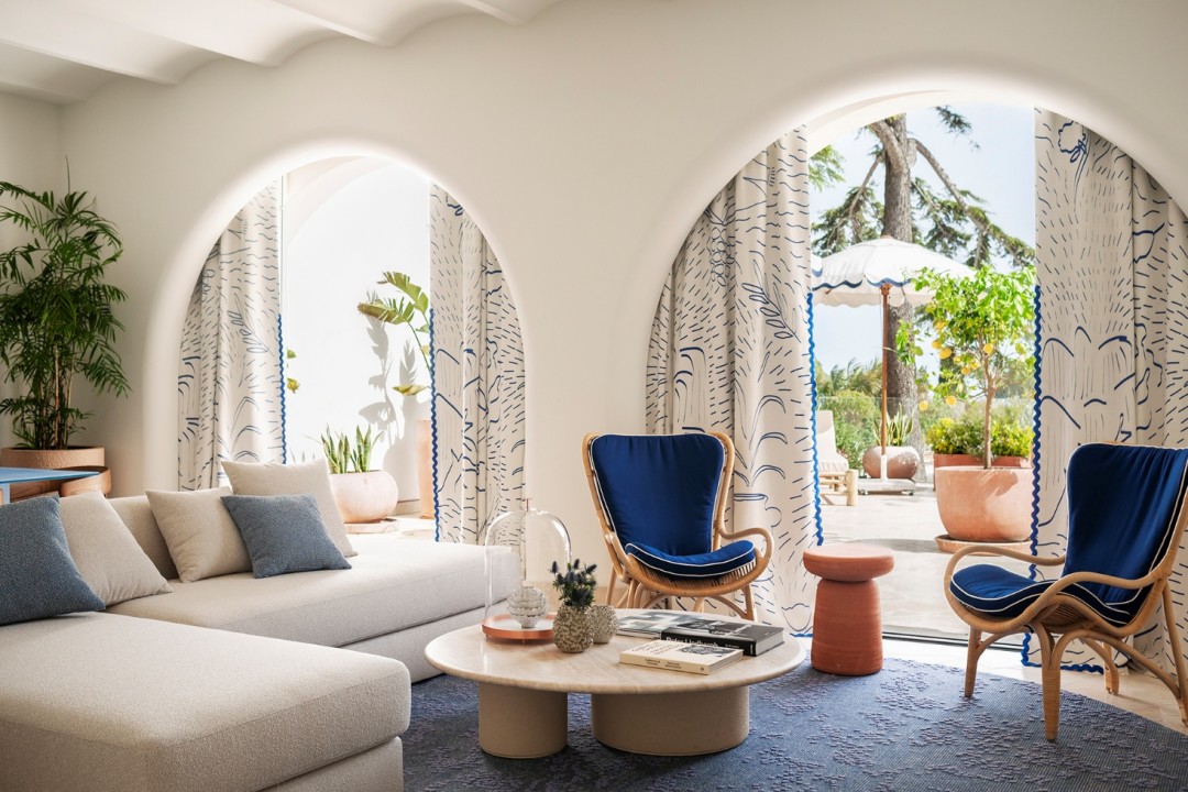 上一季,卓美亚卡普里宫酒店推出了由 Patricia Urquiola 操刀的全新设计,从室内空间,到泳池与酒吧区,以卡普里岛土地保护神 Genius Loci 为灵感的设计有机延展,打造出精致优雅的现代格调。
