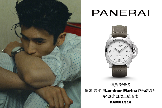 演员张云龙佩戴沛纳海Luminor Marina庐米诺系列44毫米自动上链腕表(PAM01314)