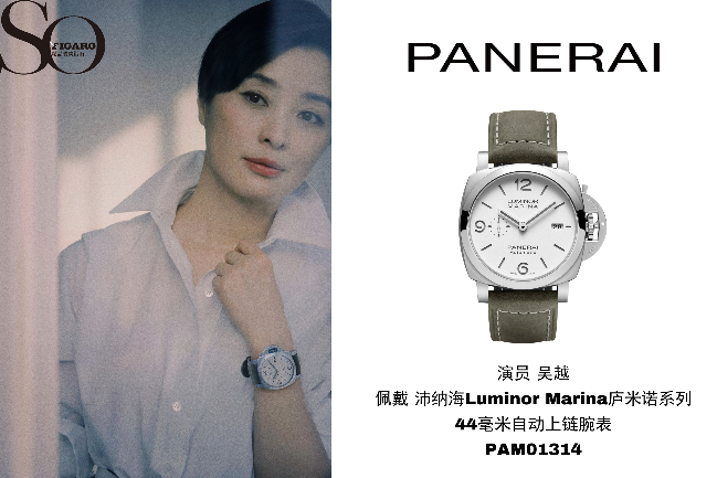 演员吴越佩戴沛纳海Luminor Marina庐米诺系列44毫米自动上链腕表(PAM01314)