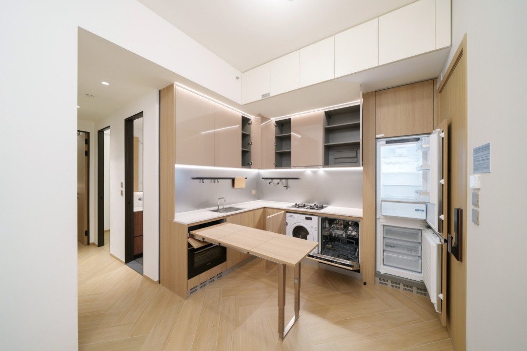 - 灵动的厨房空间:开放式厨房与可折叠餐桌的组合,让空间运用达到极致。朋友聚会时展开,日常则收起,客厅更显宽敞。