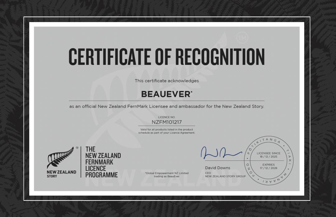 New Zealand Story Group 首席执行官 David Downs 表示:“我们热烈欢迎 BeauEver 加入银蕨标志(FernMark)认证计划。银蕨标志是新西兰的国际信任符号,背后承载着新西兰独有的国家核心价值,BeauEver 通过了我们严格的全维度资质审核,充分展现了其对新西兰品质标准的坚守与传承,相信其将成为银蕨标志精神的优秀传播者,让全球消费者感受到真正的新西兰品质。”