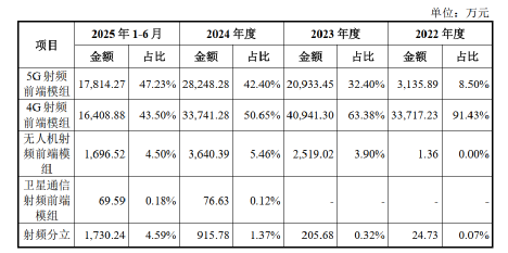 锐石创芯招股书公开信息显示,2025年上半年,锐石创芯实现营收3.77亿元,其中5G射频前端模组约1.78亿元,4G射频前端模组约1.64亿元,两者合计接近九成收入来源。而无论是MMMB PAM还是L-PAMiF,这些构成收入主体的产品,本质上都以PA为核心,它们可以搭载滤波器,但并不是由滤波器决定价值的产品。