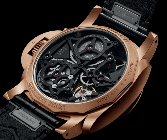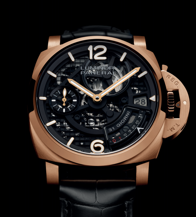 PAM01631腕表将Luminor庐米诺系列腕表的标志性设计融入44毫米Goldtech™红金表壳,尽显沛纳海的精湛机械造诣。Goldtech™红金材质主要由金和铜组成,并加入少量铂金和银来提高韧性,散发独特的红金色调。以此特殊合金打造表壳,可提高腕表的耐用性,延长其使用寿命。