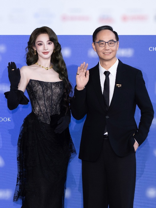周大福珠宝集团董事总经理黄绍基先生,佩戴周大福全新万相系列珠宝,携演员彭小苒亮相北影节闭幕红毯。彭小苒选择周大福全新万相系列,为简约优雅造型再添华彩。颈间的足金钻石鎏彩项链,在光影流转间熠熠生辉,璀璨钻石如漫天星芒缀满灵动链身,闪烁于玄黑花卉图腾之间,为彭小苒造型注入非凡格调,呈现矜雅魅力。